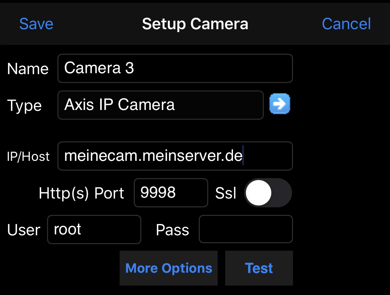 Im Idealfall bekommen Sie nun direkt das Live-Bild der Kamera angezeigt. Ist das nicht der Fall, dann kontrollieren Sie die Adresse der Kamera, den Port sowie Benutzername und Kennwort. Wichtig auch: Wenn Sie die Kamera im heimischen WLAN erreichen, dann genügt die IP-Adresse. Soll der Zugriff auch von Außen erfolgen, dann müssen Sie sie aus dem Internet erreichbar machen. Wie das geht, lesen Sie hier.