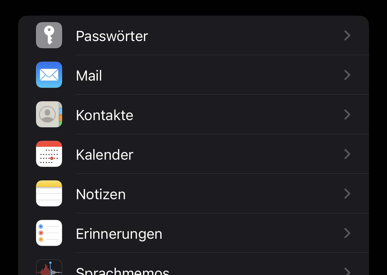 Konfiguration von Kalender- und Kontakt-Konten in iOS 18