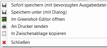Drücken Sie die konfigurierte Taste für den Bereich, dann friert der Bildschirminhalt ein und Sie können mit der Maus einen Rahmen um den entsprechenden Bereich ziehen. Nach Loslassen der linken Maustaste fragt Greenshot Sie nach dem Ziel: Sie können den Ausschnitt an einem Standardort speichern, den Zielort festlegen, ihn zur Bearbeitung im Greenshot-Editor öffnen, drucken oder in die Zwischenablage kopieren.