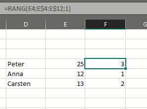 RANG.MITTELW() berechnet bei Gleichständen den Durchschnitt der Rangpositionen. Im gleichen Beispiel würden beide Spieler Platz 2,5 bekommen, der nächste wird Platz 4.