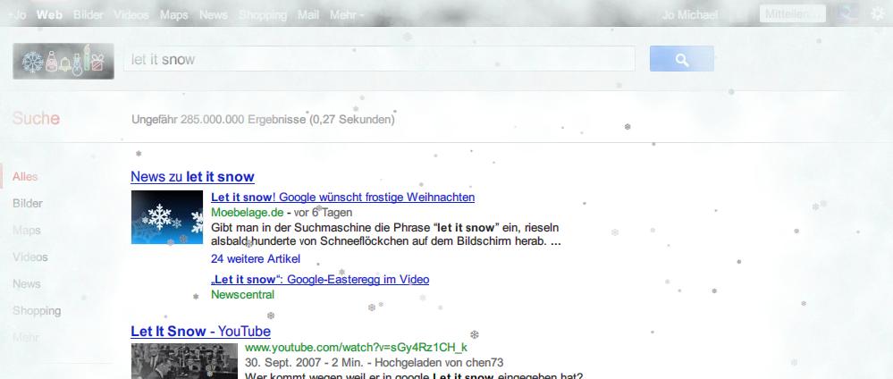 Bei Google zum Beispiel schneit es in der Suchmaschine – und zwar so heftig, dass der Bildschirm nach kurzer Zeit zufriert. Dann heißt es Eis kratzen, um nicht den Durchblick zu verlieren. Wer möchte, kann allerdings auch den Auftauknopf benutzen. So geht’s: