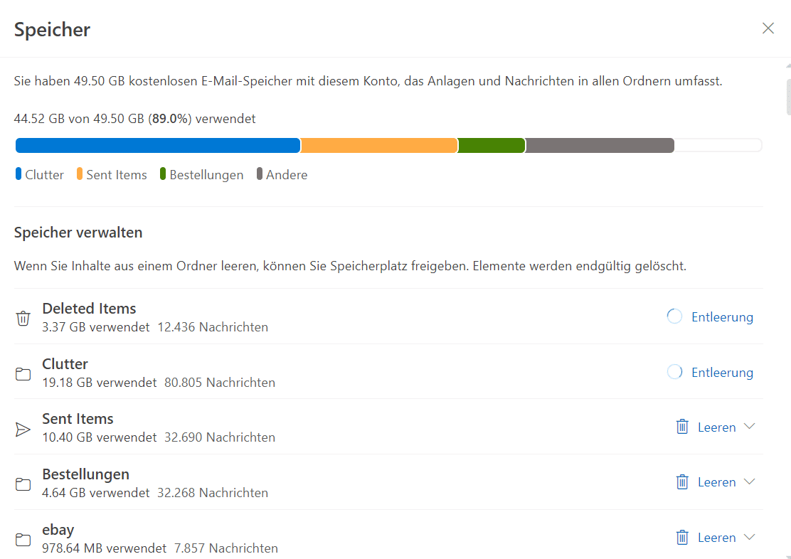 • Clutter und Junk-E-Mail sammeln sich über Jahre an. Outlook sortiert SPAM-E-Mails automatisch weg, löscht sie aber nicht.