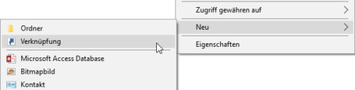 Legen Sie eine neue Verknüpfung auf dem Desktop an, indem Sie mit der rechten Maustaste auf das Desktop klicken und dann Neu > Verknüpfung anwählen.