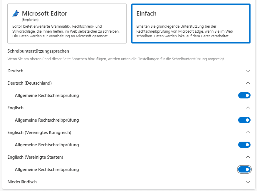 - Edge kann parallel in mehreren Sprachen prüfen – deaktiviert aber Sprachen, die ihr nicht nutzt, um Fehlalarme zu vermeiden.