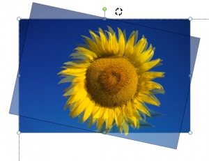 - Markieren Sie das Bild mit der Maus, sodass Anfasser-Punkte sichtbar werden. Am oberen Rand des Bildes, in der Mitte, finden Sie auch einen grünen Punkt.