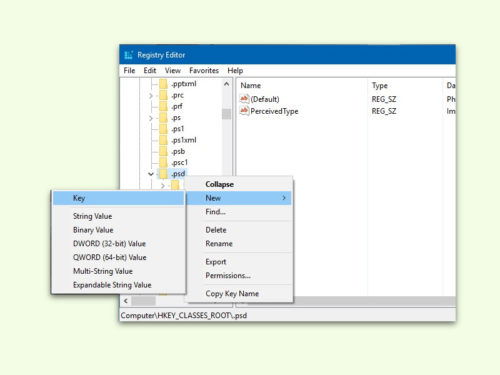 - Hier nach der Erweiterung für den Datei-Typen suchen, der ins Neu-Menü eingebaut werden soll – etwa .psd für Photoshop-Dateien.