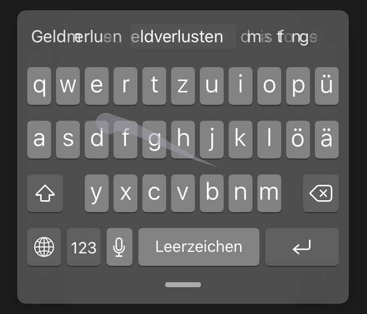 Jetzt könnt ihr loslegen: Setzt den Finger auf den ersten Buchstaben eures Wortes und zieht ihn ohne Abheben zu den folgenden Buchstaben. Die Spur muss nicht perfekt sein – Apples Algorithmus ist mittlerweile sehr gut darin, eure Absichten zu erkennen.