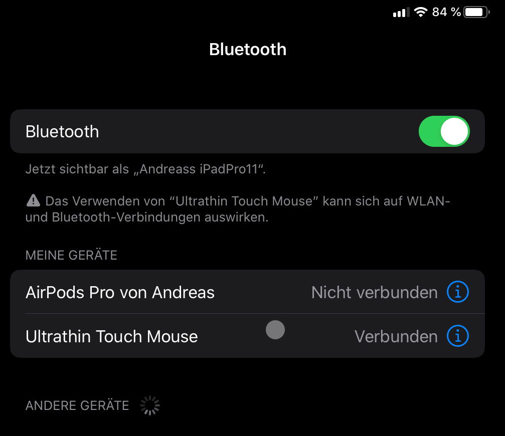 Die Einrichtung ist denkbar einfach: Versetzt eure Bluetooth-Maus in den Kopplungsmodus und öffnet die iPad-Einstellungen unter „Bluetooth“. Das Gerät erscheint in der Liste verfügbarer Geräte.