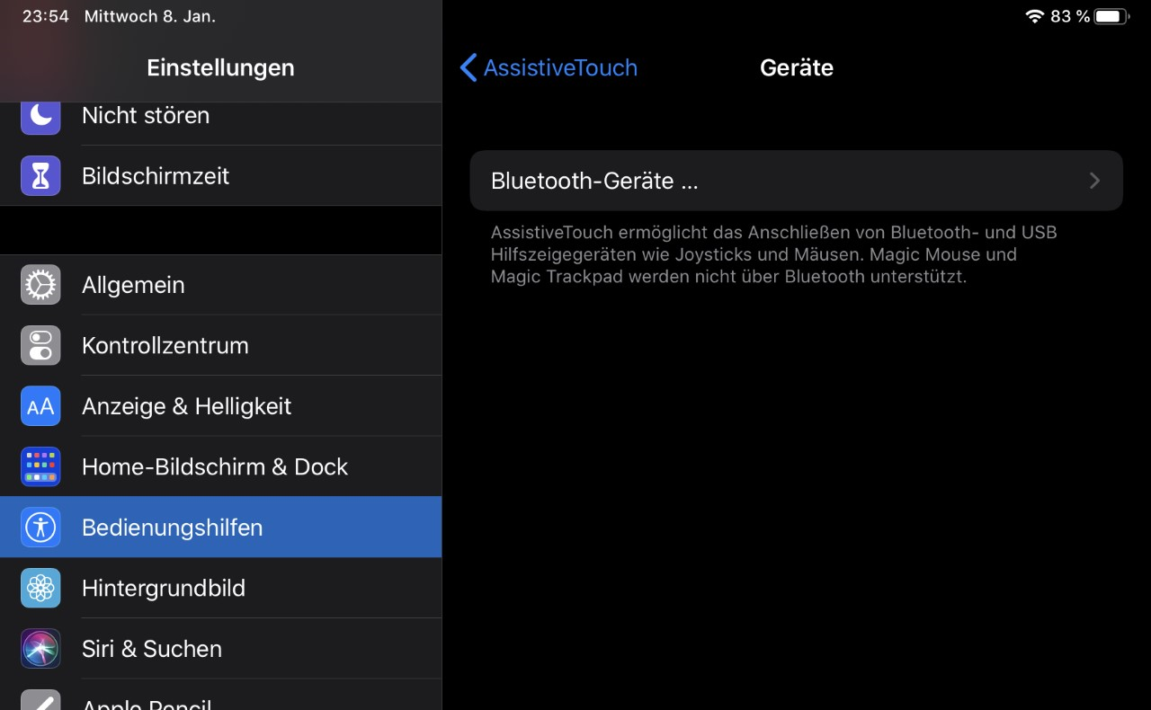 Die Einrichtung ist denkbar einfach geworden. Geht zu Einstellungen → Apple Pencil und Trackpad (früher unter Bedienungshilfen versteckt). Hier findet ihr alle Optionen für externe Zeigegeräte. Bluetooth-Mäuse koppelt ihr wie gewohnt über Einstellungen → Bluetooth. Die Maus muss im Kopplungsmodus sein – bei den meisten Modellen haltet ihr dafür einen Knopf an der Unterseite gedrückt.