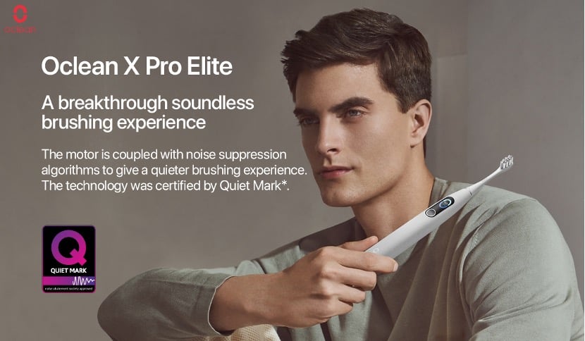 Die Oclean X Pro Elite strebt nicht nur danach, die Reinigungskraft zu erhöhen, sondern sie will zugleich auch das Geräusch der laufenden Zahnbürste verringern. Sie ist die erste smarte, elektrische Zahnbürste, die mit der sogenannten Quiet-Mark-Zertifikation der britischen Lärmschutzvereinigung ausgezeichnet wurde.