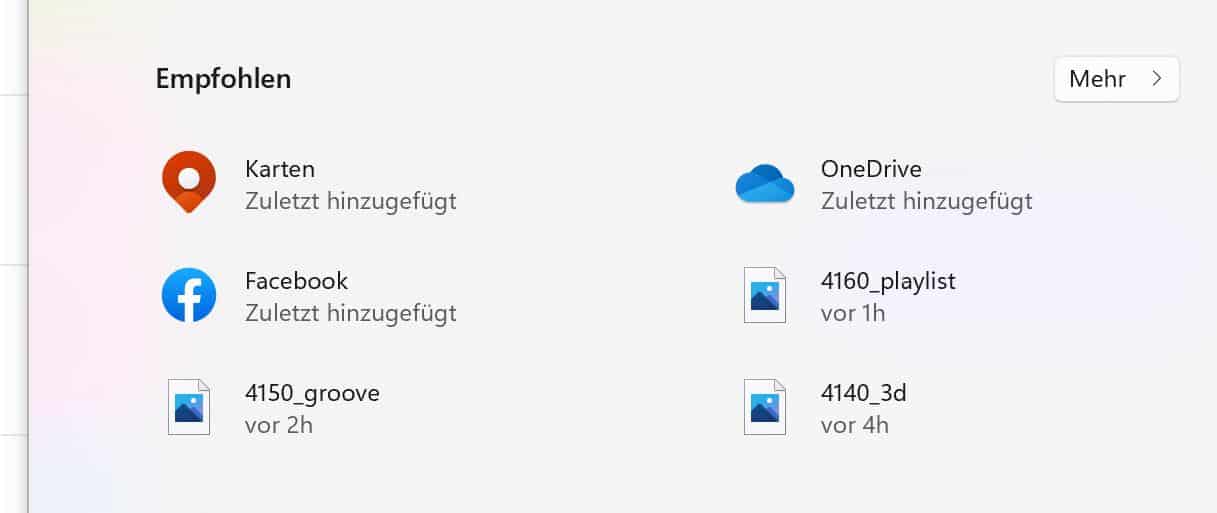 Unter den angepinnten Apps findet ihr eine wilde Mischung aus Apps und Dateien. Die werden von Windows 11 für euch bestimmt: Was könnte euch interessieren? Welche App ist neu oder oft benutzt? Welche Dateien habt ihr gerade neu angelegt oder verändert? Wenn in dieser sich stetig verändernden und aus eurem Nutzungsverhalten lernenden Liste ein Element vorhanden ist, das ihr darin nicht sehen wollt, dann klickt es mit der rechten Maustaste an und auf Aus Liste entfernen.