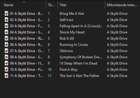Musik: Ergänzt die Ansicht um Interpret, Album, Titel, Genre, Dauer und Bewertung. Sehr hilfreich für MP3-Sammlungen.