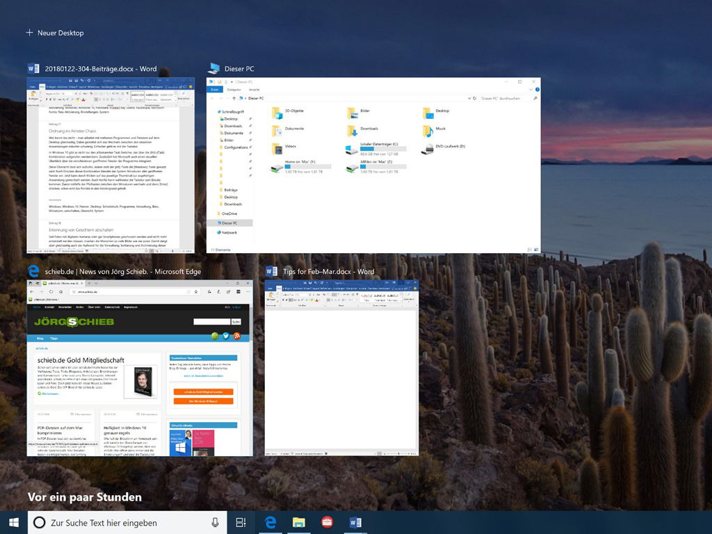 In Windows 10 gibt es nicht nur den altbekannten Task-Switcher, der über die [Alt]+[Tab]-Kombination aufgerufen werden kann. Zusätzlich hat Microsoft auch einen visuellen Überblick über die verschiedenen geöffneten Fenster der Programme integriert.