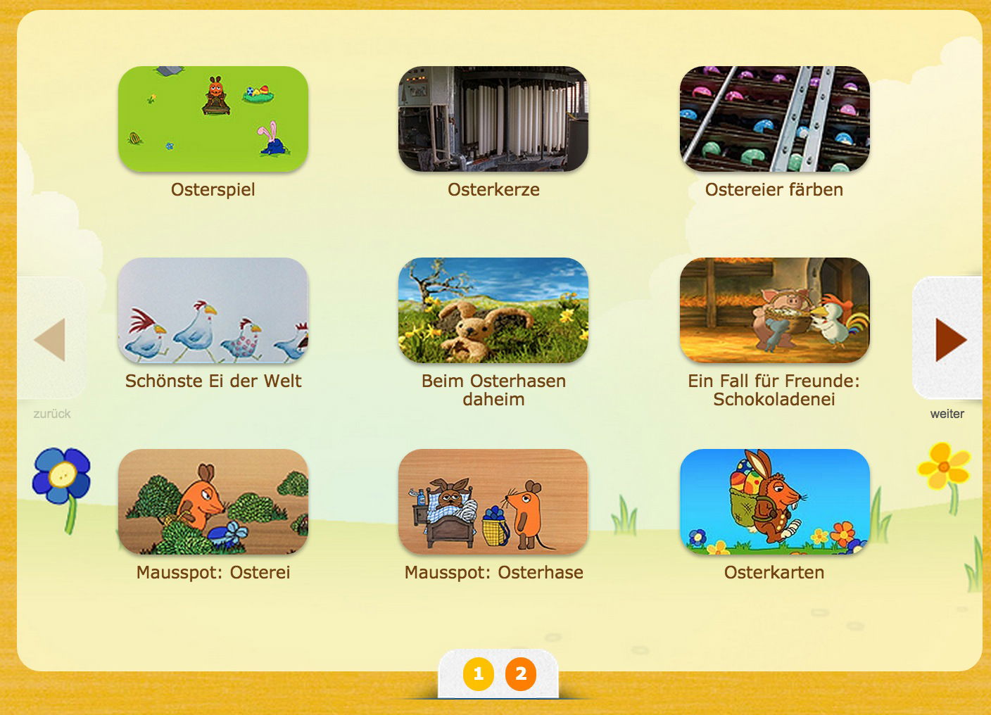 Natürlich sind auch Maus und der Elefant in Osterstimmung: Auf der Homepage der Maus gibt es nicht nur schöne Geschichten und Filme rund ums Thema Ostern, sondern auch einige Spiele. Osterspiele, um genau zu sein. Zum Beispiel eine Ostereier-Suche mit der Maus. Solche Mini-Games gefallen nicht nur den Kleinen, so viel kann ich verraten. Ausmalbilder gibt’s auch.