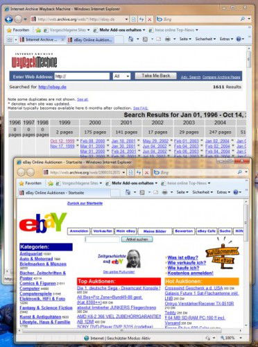 Wie sah www.schieb.de eigentlich vor fünf Jahren aus, oder der Spiegel, Amazon und eBay? Wer einen Blick zurück werfen möchte, kann in eine virtuelle Internet-Zeitmaschine steigen und zu den Anfängen des World Wide Web reisen.