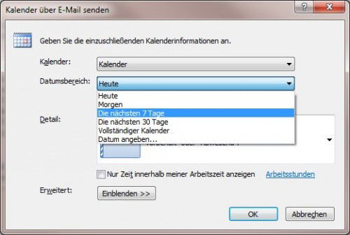 Um Termine mit Freunden oder Kollegen abzugleichen, muss es nicht immer die große Lösung mit Exchange Server sein. Wer nur gelegentlich Termine abstimmen und nicht gleich den ganzen Kalender im Internet veröffentlichen möchte, kann mit einem Trick nur eine kurze Übersicht der eigenen Termine verschicken.