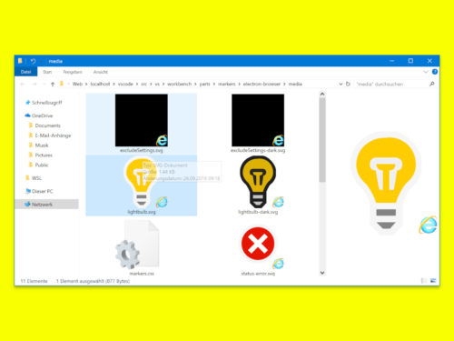 Wer im Windows-Explorer die Ansicht für große oder extragroße Miniaturansichten aktiviert und dann ein JPG- oder PNG-Bild markiert, kann sich direkt eine Vorschau anzeigen lassen. Mit SVG-Grafiken funktioniert das normal nicht – es sei denn, Sie nutzen eine System-Erweiterung.