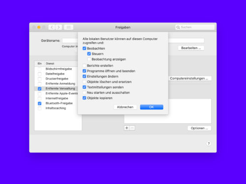 Wer an mehreren Geräten arbeitet, muss nicht immer zwischen ihnen hin und her laufen. Im Netzwerk gelingt der Zugriff auch aus der Ferne. Handelt es sich etwa um zwei Macs, kommt hierfür die entfernte Verwaltung zum Einsatz.