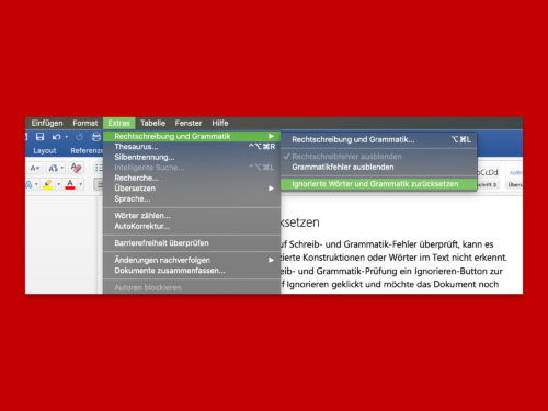 Wird ein Word-Dokument am Mac auf Schreib- und Grammatik-Fehler überprüft, kann es gut sein, dass das Programm komplizierte Konstruktionen oder Wörter im Text nicht erkennt. Für diesen Fall steht in der Rechtschreib- und Grammatik-Prüfung ein Ignorieren-Button zur Verfügung. Hat man versehentlich auf Ignorieren geklickt und möchte das Dokument noch einmal überprüfen, ist das mit wenigen Klicks möglich.