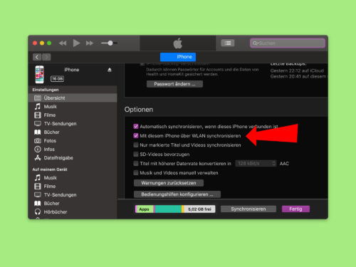 Fotos, Videos und weitere Daten vom iPhone auf den PC oder Mac kopieren und umgekehrt: Das geht besonders einfach über die iTunes-Software von Apple. Allerdings muss das iPhone dazu normalerweise per USB-Kabel an den Computer angeschlossen werden. Mit einem Trick gelingt die Synchronisierung auch kabellos.