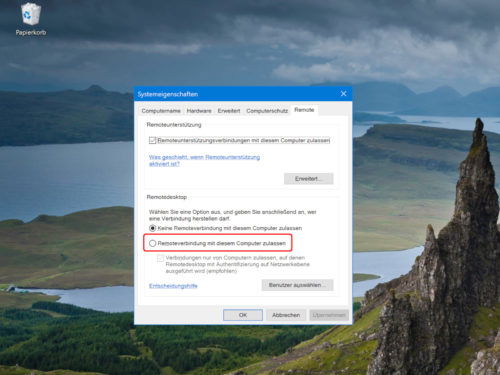 Remote-Desktop einschalten