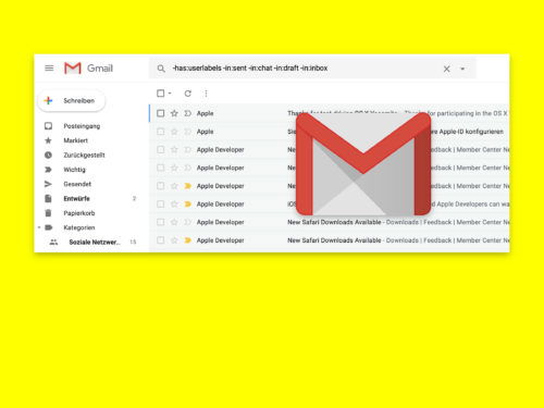 Bei Google Mail gibt es keine Ordner, sondern Labels. Der Vorteil: Eine Nachricht kann mehrere Labels gleichzeitig aufweisen. Nach diesen Labels lässt sich auch suchen. Möchte man hingegen eine eMail finden, die kein Label hat, sondern „nur“ archiviert wurde, gestaltet sich die Suche schon schwieriger.