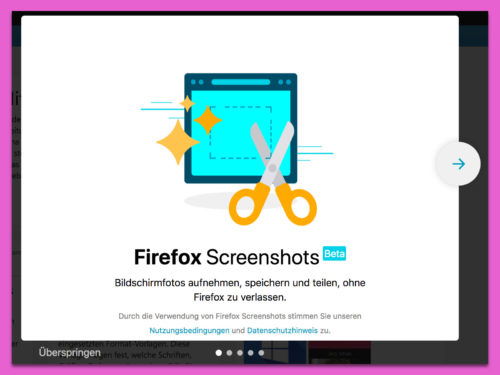 Die meisten Seiten im Internet sind länger als das, was auf einen Bildschirm passt. Die Folge: Um die restlichen Inhalte zu sehen, muss nach unten gescrollt werden. Soll ein Foto einer Webseite angefertigt werden, müsste man mehrere Bilder zusammensetzen. Ab Firefox 56 geht das auch einfacher.