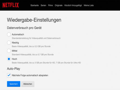 Datenverbrauch für Netflix-Streams festlegen