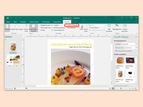 Zum Erstellen von Broschüren und anderen Print-Dokumenten eignet sich Publisher am besten. Dieses Tool gehört zu Microsoft Office und versteht sich auf Satz und Layout. Wer etwa eine Übersicht aller eingesetzten Bilder in einer Publikation einsehen möchte, kann diese Liste mit wenigen Klicks aufrufen.