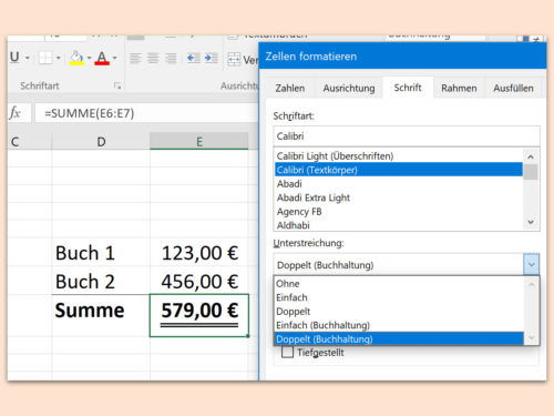 Summen werden doppelt unterstrichen - das lernte man früher schon in der Schule. Ein Problem beim normalen doppelten Unterstreichen ist allerdings: Buchstaben mit Unterlängen werden angeschnitten und sind daher schlechter erkennbar. Besser zu sehen ist die Unterstreichung einer Summe, wenn sie mit einer speziellen Formatierung ausgestattet wird.