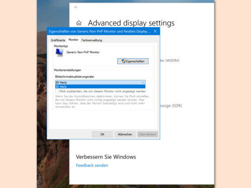 Windows 10: Frequenz des Bildschirms anpassen