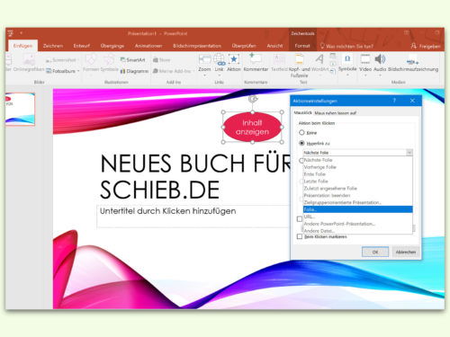 Interaktive Präsentationen sind gleich doppelt so interessant. In PowerPoint lassen sich Grafiken und andere Elemente so verlinken, dass beim Anklicken während der Wiedergabe der Präsentation auf eine andere Folie der gleichen Datei gewechselt wird.