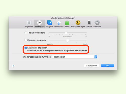 Stammt Musik von unterschiedlichen Künstlern und Alben, haben einige Tracks oft eine andere Lautstärke als andere. Beim Abspielen folgt dann leise und lautere Musik direkt aufeinander. Mit iTunes kann dies schnell geändert werden.