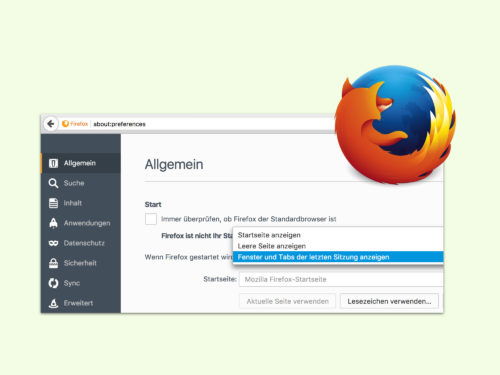Wenn Firefox beim Start offene Tabs wiederherstellen soll, werden die Seiten normal erst beim Anklicken geladen. Dadurch startet der Browser schneller. Wer immer sofort alle Tabs laden will, schaltet die Funktion ab.