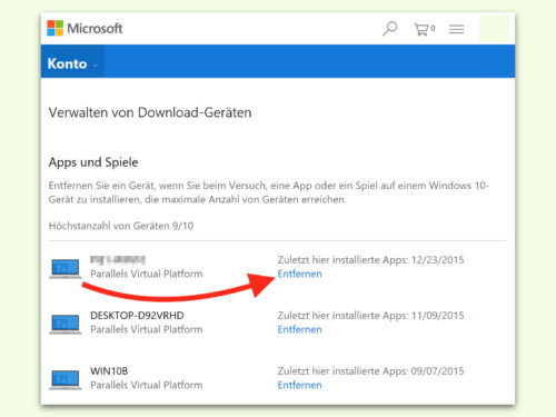Wer aus dem Store von Windows 10 Apps laden will, kann diese nur auf 10 Geräten gleichzeitig installieren. Richtet man des Öfteren neue PCs ein, ist dieses Limit schnell erreicht. Dann müssen zuerst alte Geräte aus dem Microsoft-Konto gelöscht werden.