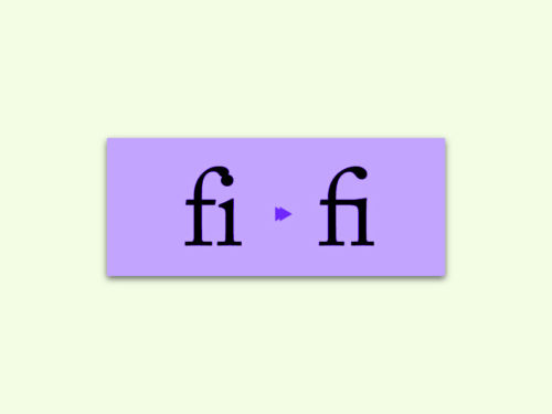 Der Buchstabe „f“ braucht auf der rechten Seite viel Platz. Da kollidiert er gerne schon mal mit dem nachfolgenden Buchstaben – ob nun einem weiteren „f“, einem kleinen „i“ oder auch einem „j“. Besser sieht das Ganze aus, wenn man eine Ligatur nutzt.