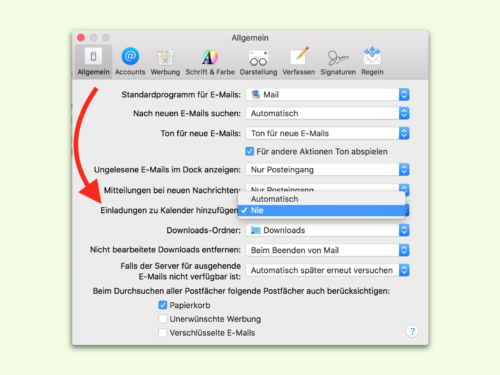 In der Mail-App von macOS werden Termine, die in eMails enthalten sind, automatisch in den Kalender übernommen. Diese Automatik stört bisweilen mehr, als sie nützt – etwa dann, wenn man viele Einladungen zu Terminen bekommt, aber nur an wenigen teilnimmt.