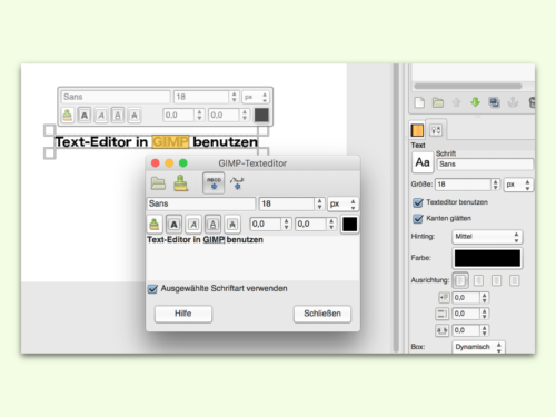 GIMP: Text-Editor zum Einfügen von Text-Ebenen verwenden