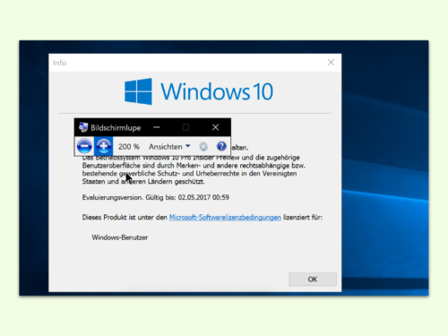 Manchmal sind Buttons oder Texte auf dem Bildschirm so klein, dass man sie kaum erkennen kann. In diesem Fall hilft oft die Bildschirm-Lupe weiter.