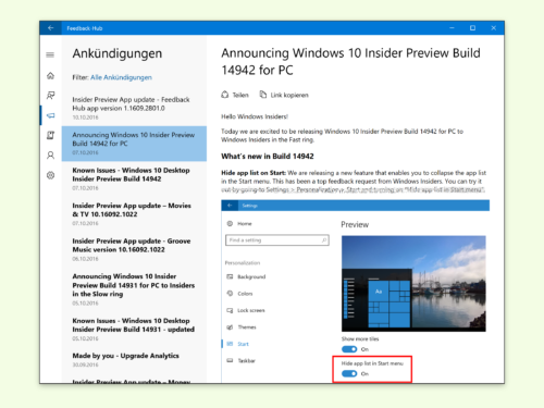 Über den Feedback-Hub erfasst Microsoft Rückmeldungen von Testern im Rahmen des Windows Insider-Programms. Hier können Probleme gemeldet und neue Funktionen ausprobiert werden. Vorausgesetzt, der Feedback-Hub startet überhaupt korrekt.