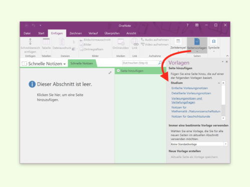 OneNote-Vorlagen für Notiz-Seiten einfügen