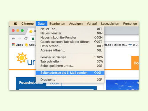 Chrome: Adresse einer Webseite per eMail verschicken