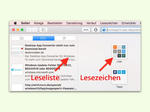 Wer eine Internet-Seite später lesen will, muss sich die Adresse nicht von Hand aufschreiben. Das geht auch einfacher. Am Mac gibt’s im Safari-Browser sogar gleich zwei Methoden, mit denen sich Webseiten für später speichern lassen.