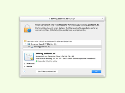 Wer gesichert im Internet unterwegs sein will, muss unbedingt auf eine sichere Verschlüsselung zu der aktuell besuchten Website achten. Wer das Zertifikat der Seite ausgestellt hat und bis wann es gültig ist, kann man leicht selbst herausfinden.
