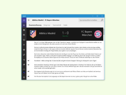 Wer arbeiten muss und keine Zeit hat, den Fernseher oder das Radio einzuschalten, kann sich trotzdem auf dem Laufenden über aktuelle wichtige Sport-Ereignisse halten. Möglich macht’s die Sport-App von Windows 10.