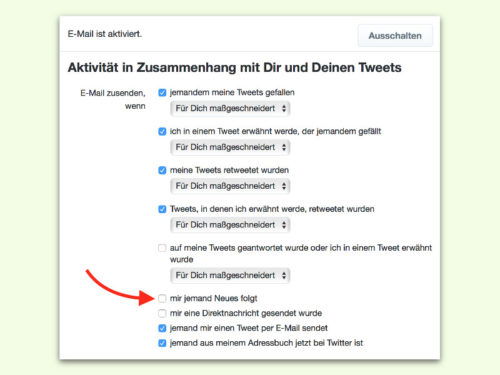 Twitter: Mitteilungen über neue Follower abschalten