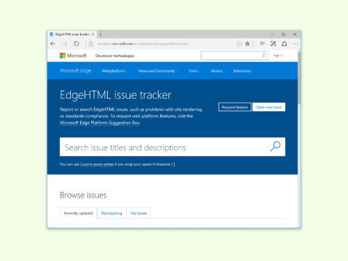 Wird eine Website in Microsoft Edge von Windows 10 nicht korrekt angezeigt, kann man solche und andere Browser-Fehler in Kürze direkt an Microsoft melden. Dazu geht der neue Problem-Tracker an den Start.