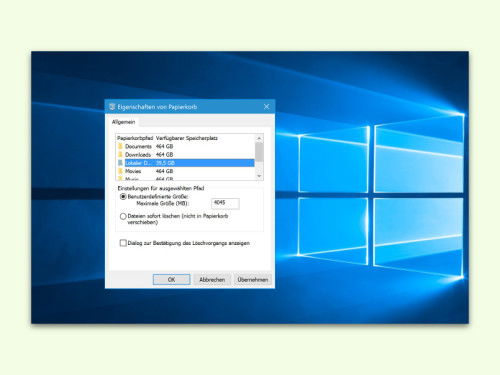 Windows 10: Festlegen, wie viel Platz der Papierkorb belegen darf