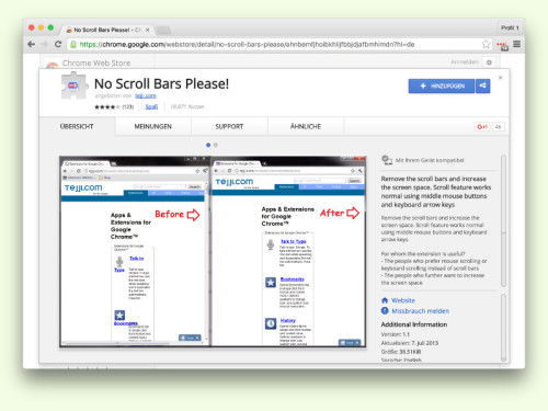 Chrome-Browser: Scroll-Leisten am Rand des Fensters ausblenden
