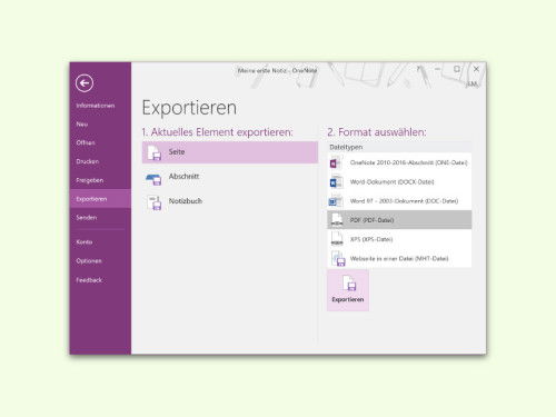 OneNote-Notizen als PDF-Dateien exportieren